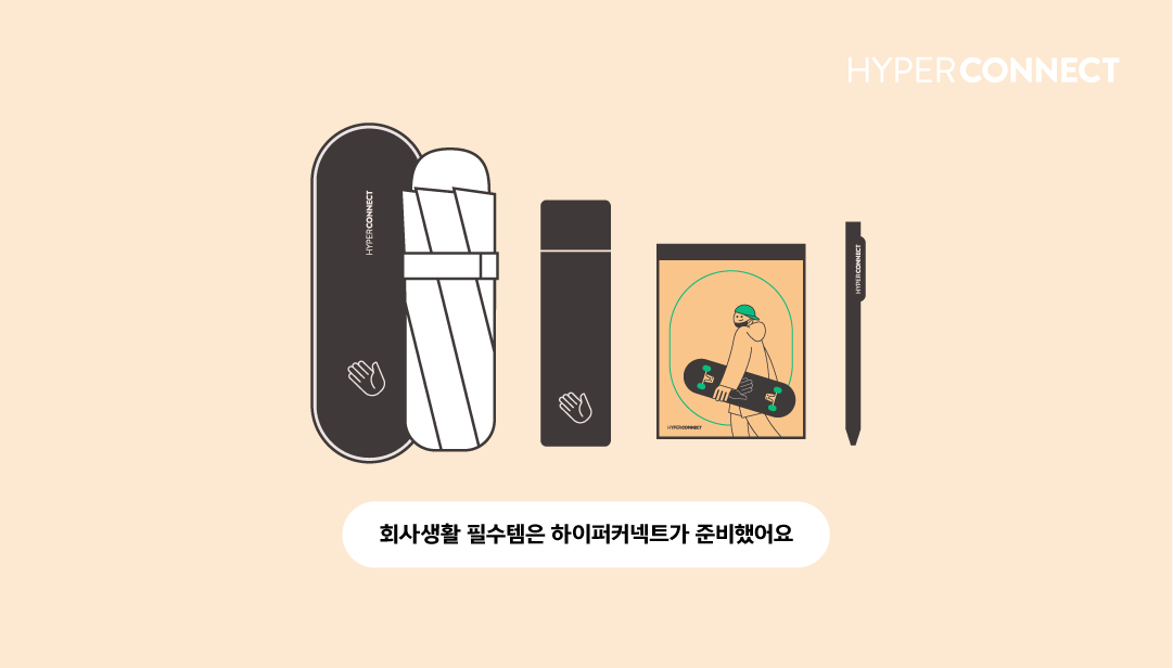 하이퍼커넥트®에서는 Welcome Kit뿐 아니라 하이퍼커넥터들이 소속감을 느끼며 더 즐겁고 행복한 오피스라이프를 할 수 있도록 다양한 방법으로 서포트를 하고 있습니다. 잘 갖춘 웰컴키트를 준비해놓고 뛰어난 동료들이 기다리고 있으니, 언제나 많은 관심과 지원바랍니다.