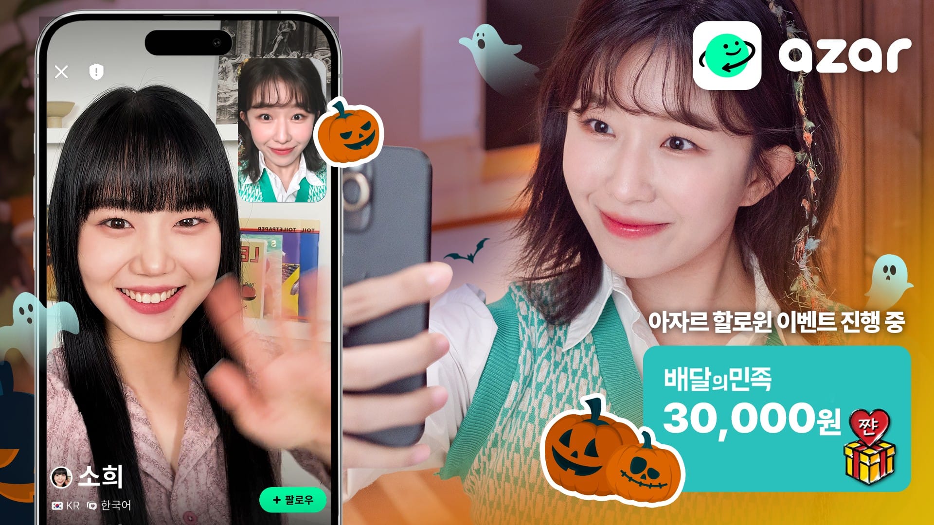 하이퍼커넥트®의 글로벌 영상 채팅 플랫폼 ‘아자르’가 핼러윈을 맞아 보다 즐겁고 긍정적인 영상 채팅 경험을 제공하기 위해 ‘출첵 King 이벤트’를 진행한다. 출첵 King 이벤트는 10월 23일(수)부터 11월 3일(일)까지 진행되며, 해당 이벤트 기간 내 아자르에 많이 접속한 기존 사용자 및 신규 가입자 중 상위 350명을 선정해 총 상금 1천만 원 상당의 배달의민족 상품권을 증정할 예정이다.
